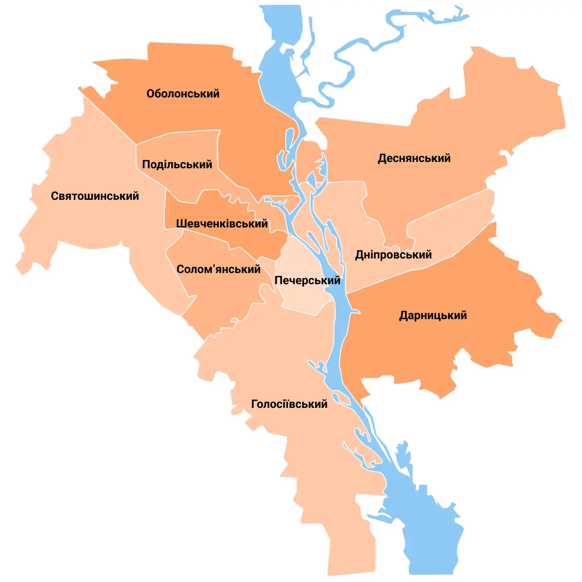 Основні райони півночі Києва